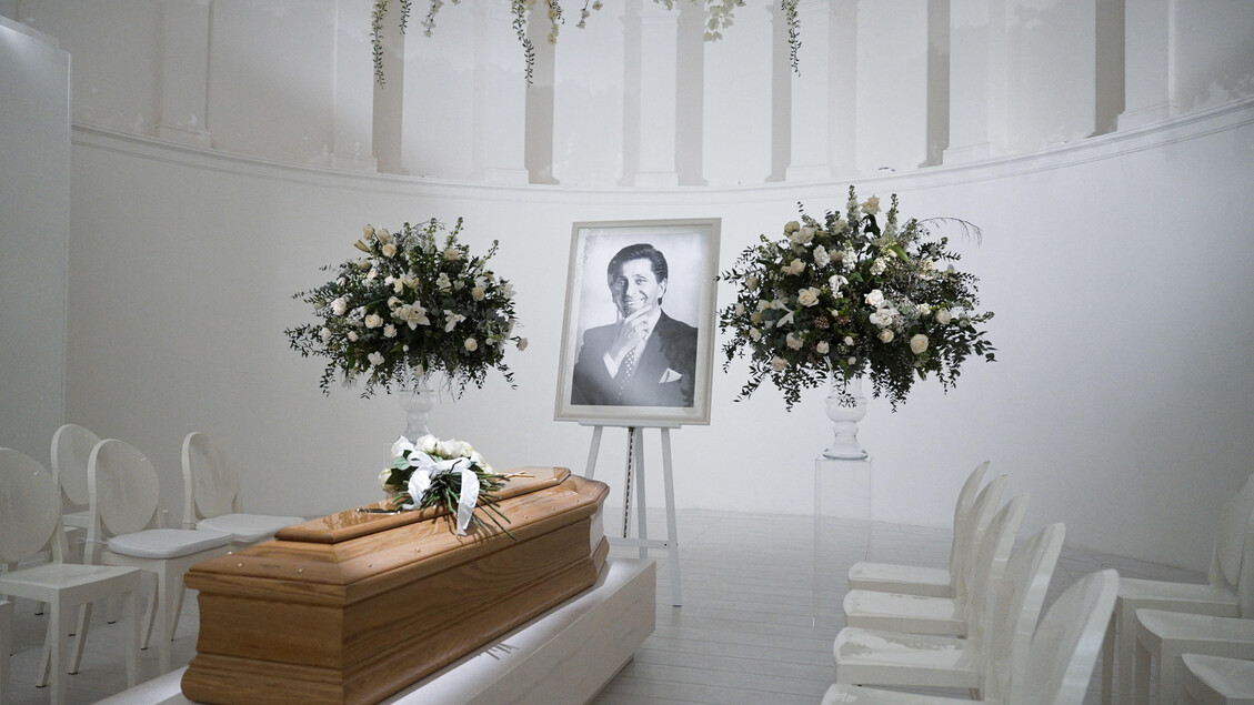 A stupire più di tutto, entrando dentro la sala con il feretro, è il bianco. Giammetti ha detto che “è una classica camera ardente, sarebbe stato ridicolo farla rossa”. L’unico oggetto a non essere bianco è la bara. Ci sono, soprattutto, decine di rose candide, dal profumo inebriante – tante anche negli omaggi floreali, tra cui quello di Donatella Versace – mentre la foto di Garavani è in bianco e nero e dal soffitto scende un’installazione carica di altri fiori pallidi, come una pergola. “Come fosse già in paradiso”, commenta la giapponese Yukie Yoko, che fu assunta da Valentino dopo aver chiesto, aspettando all’ingresso della sua boutique, di poter lavorare con lui. Alternata a lunghi momenti di silenzio e raccoglimento, in sala è stata riprodotta una ‘playlist’ dedicata con musiche di Bach, Schubert e Mozart.