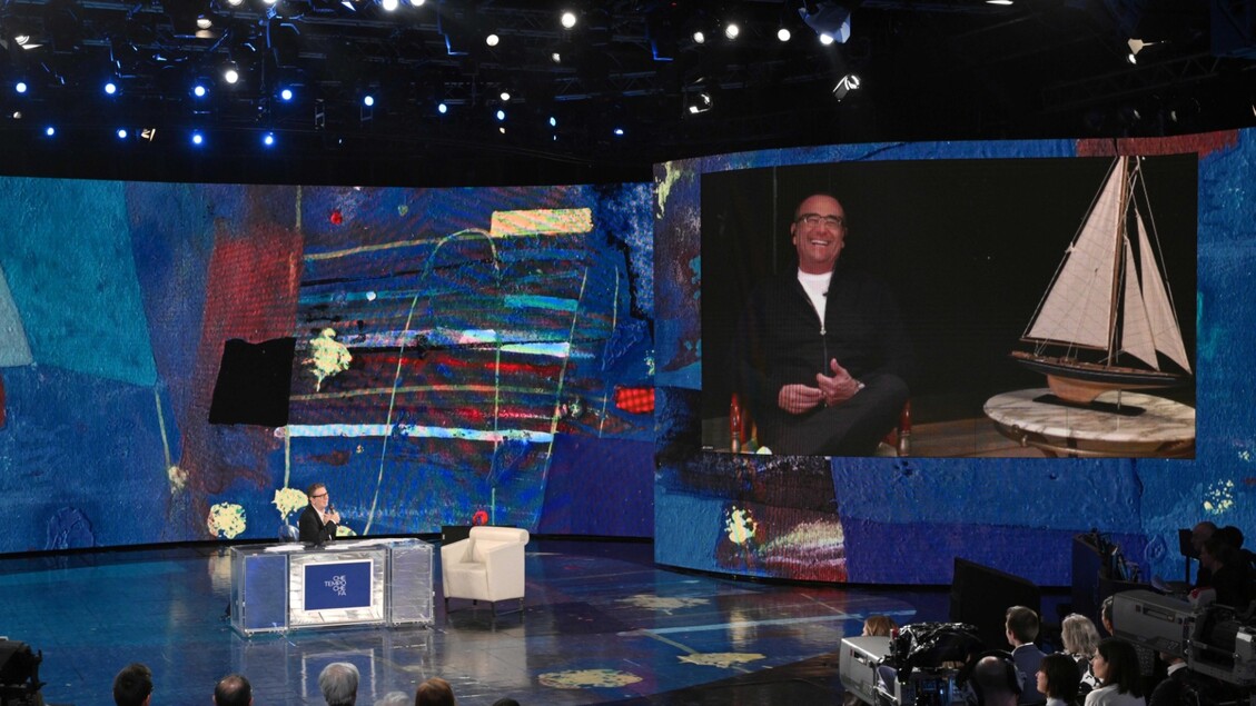 Sanremo, Carlo Conti, in videocollegamento con Che Tempo che fa