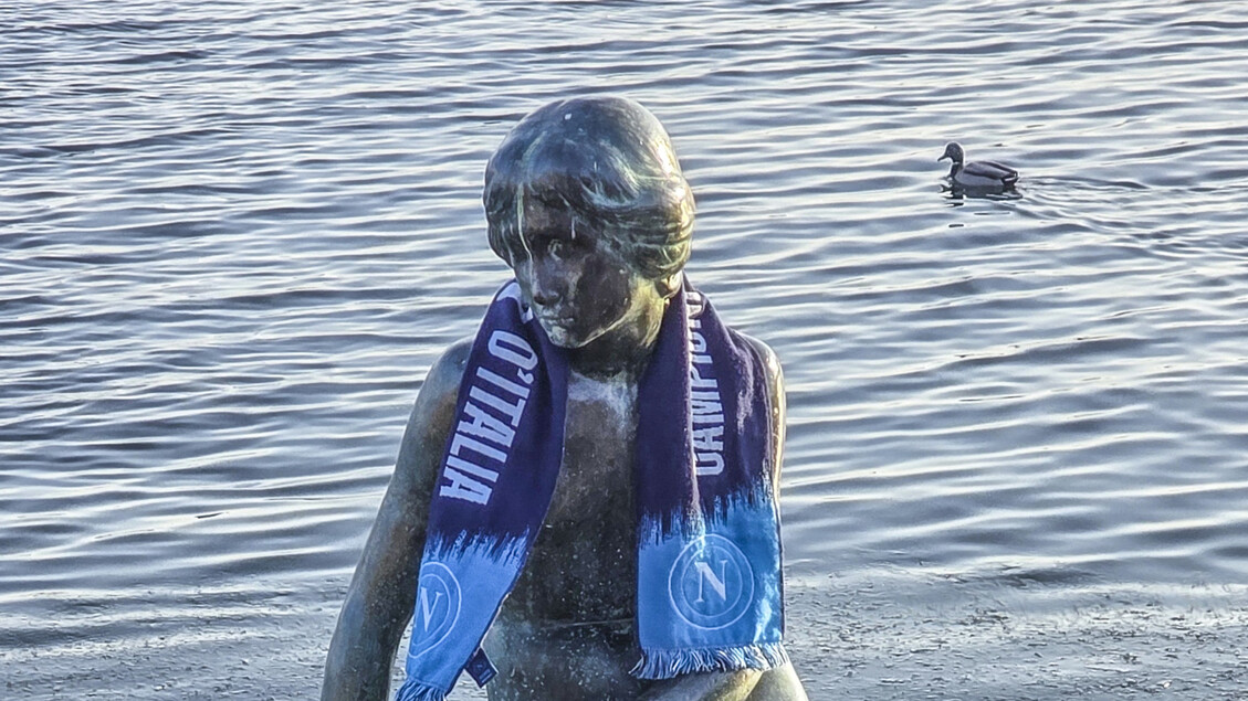 League del Napoli a Copenaghen una sciarpa dei campioni d’Italia